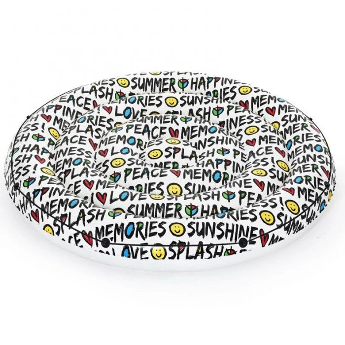 Float in style with Bestway’s Summer Quote Island float which has some pretty cool summer quotes and is perfect for pool time. Splash, Peace, Sunshine, Memories, Love, Summer, and Happiness all remind us of a beautiful sunny summer day. This supersized sitting area has a wraparound grab rope with built-in grommets making it easy to climb on. Max of two users at a time. Weight capacity 396.8 lb. Puncture resistant vinyl material. Unique and modern design. Interlocking quick release valve.