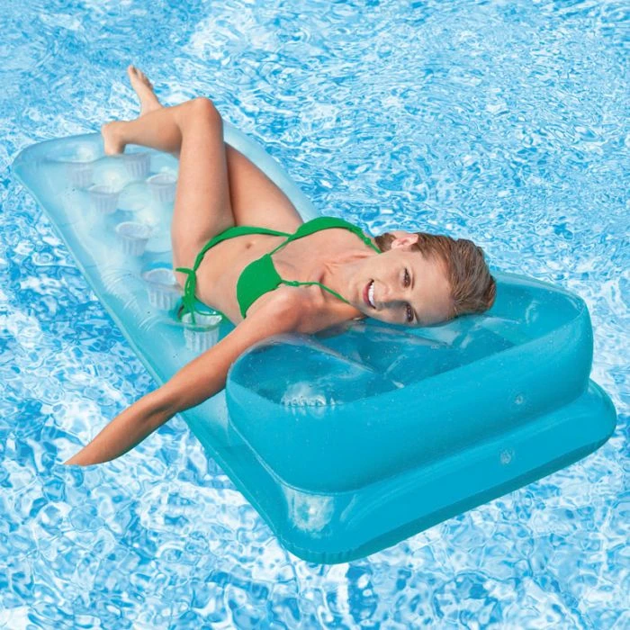 18-Pocket Fashion Lounges in bright colors of orange, green or blue. Colorful two-tone design creates a fun and creative look to the lounge. Includes a main chamber for your body and a pillow chamber to relax your head. Strengthening features include 11 gauge vinyl, coil-beam construction and an I-beam pillow. Repair patch also included. Sized at 74 in. long x 28 in. wide.