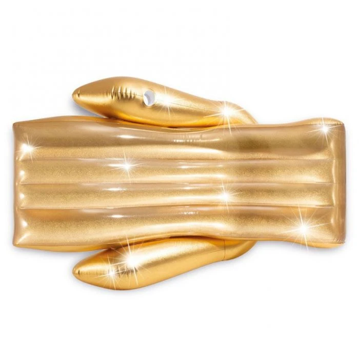 Catch everyone’s attention and look gorgeous in your next pool party with the Intex Shimmering Glitter Gold Lounge. The sun hits the glitters and sparkle all the colors in the rainbow. This is the perfect item that everyone will want to play with! Intex Shimmering Gold Lounge is relaxing and floating in the pool fun. It is made up of durable 16 gauge vinyl construction. This sturdy lounger provides extra comfort while you float. Includes 2 air chambers and 1 cup holder.