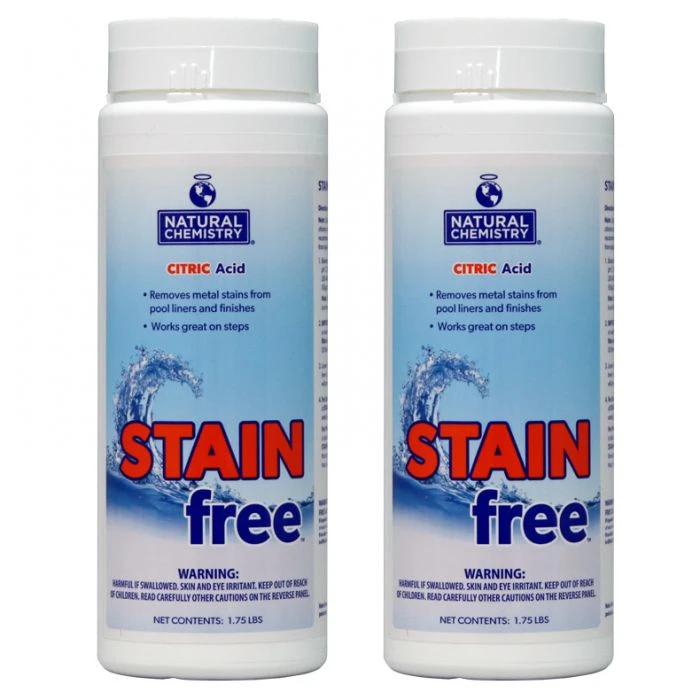 Natural Chemistry Stain Free is an all-natural way to eliminate staining to pool liners and finishes. Stain Free is a citric acid product that is ideal for treating staining on all pool surfaces and is compatible with all sanitizing systems.