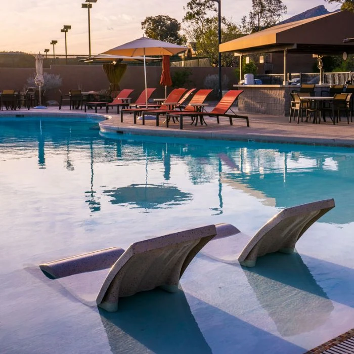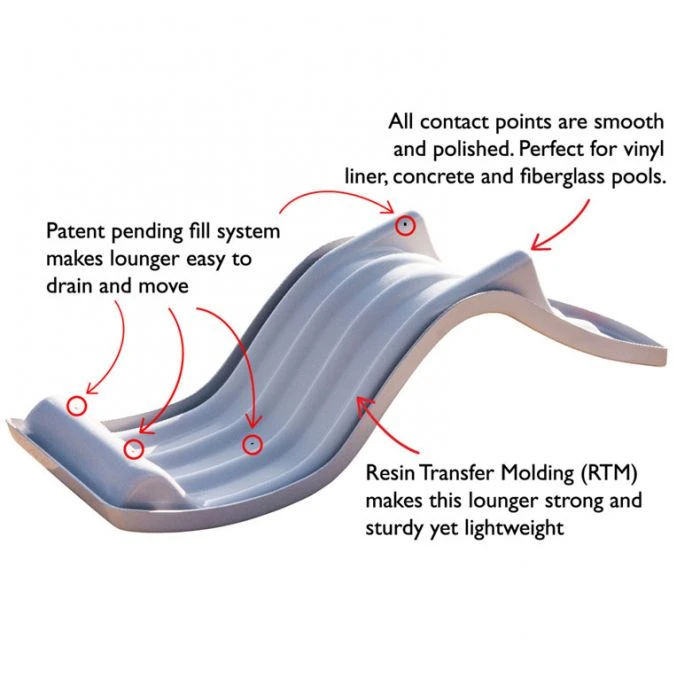 The Destination Lounger lets you relax and enjoy the pool without a splash. Sturdy construction and elegant design combine to give you the opportunity to upgrade your sun shelf space with ease. Made using an advanced RTM manufacturing process, Destination Loungers are lightweight yet strong. The innovative design allows you to easily fill the base section with water but, more importantly, it’s easy to remove the water allowing the lounger to be moved when not in use. This lounger is also salt water friendly. Place the lounger on a pool ledge with water depths up to 12 inches and just relax.