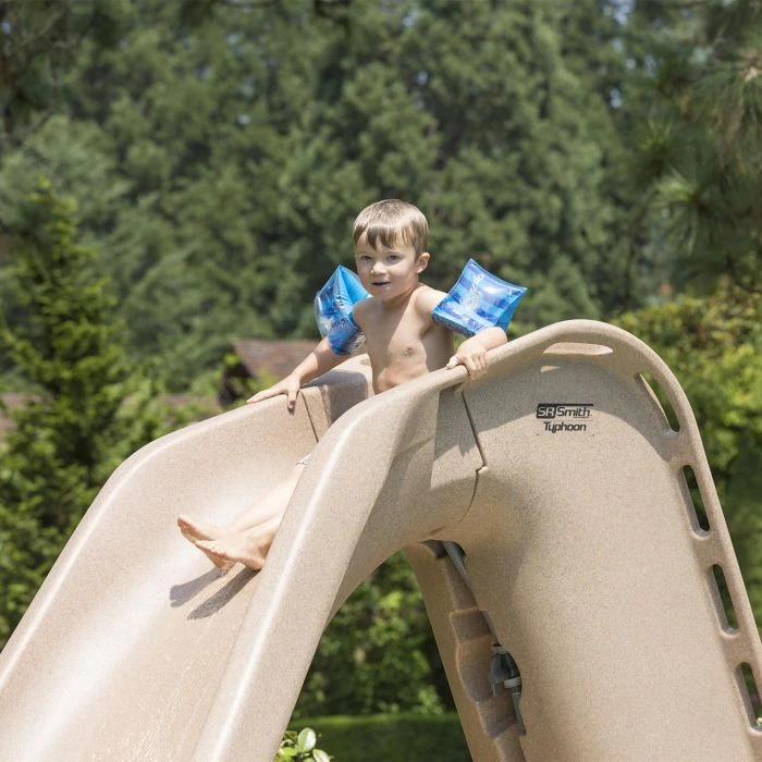The SR Smith Typhoon Pool Slide is a fantastic addition to our backyard pool. The left turn design is perfect for our space, and the sandstone color blends beautifully with our deck. Installation was straightforward, and the slide is very sturdy. Our kids love it!